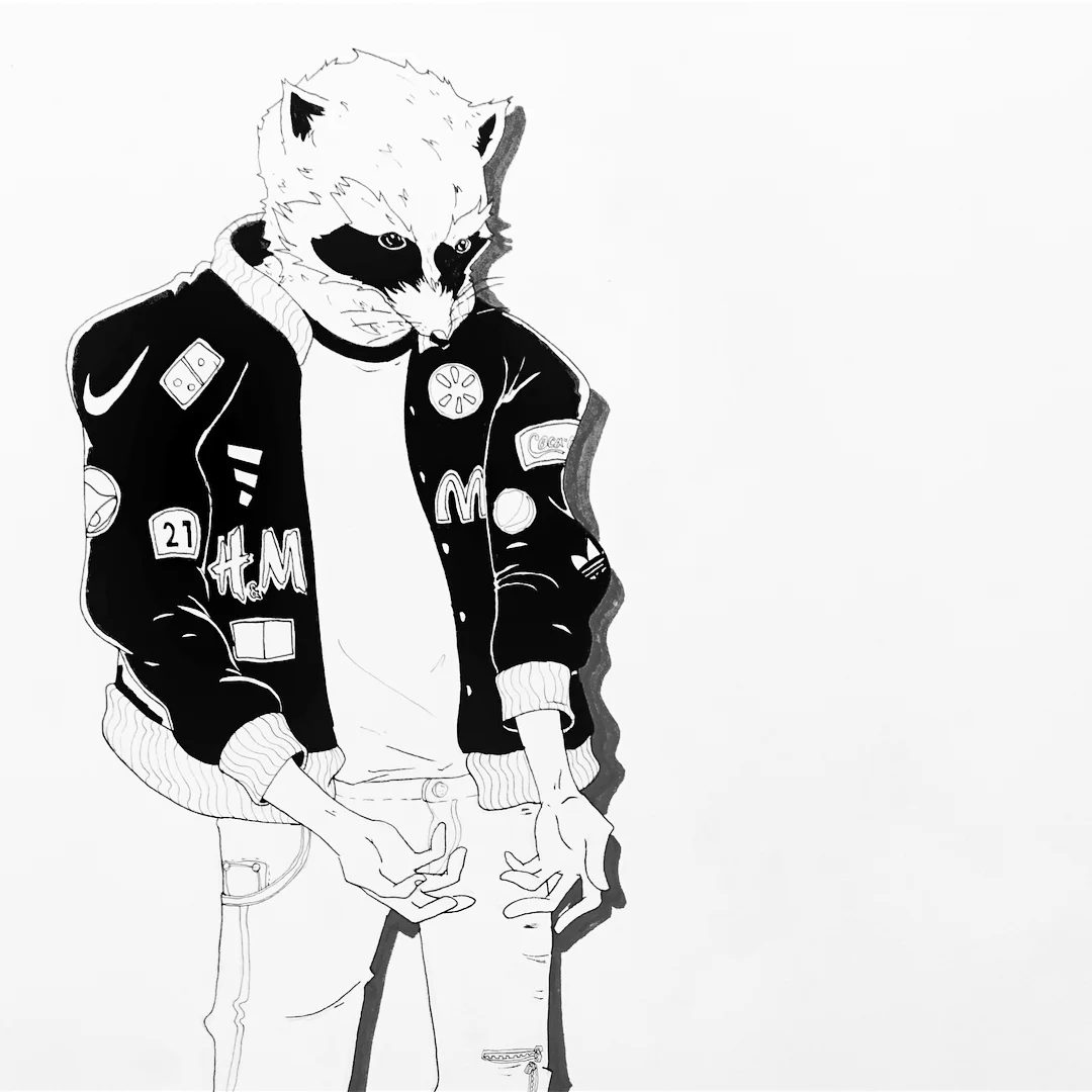 This was done for a project in my drawing class. We had to combine animal and human features, I went with the approach of a stylish raccoon. I figured a black and white drawing would lend itself well to the color scheme of a raccoon. It was drawn on 18 x 24 Bristol board with india ink.
